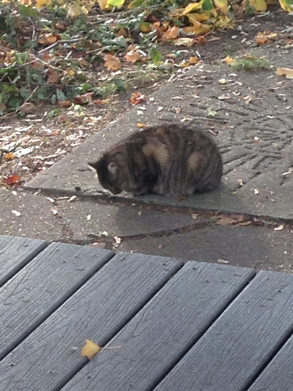 In the meantime, I hear the wind blowing and watch the leaves fall. Because I go inside every night, while one half of my cat family stays outside. I dream of sleeping with these cats, and hope to make it a reality. Until then, I update my temperature chart, and hide my worries under my hat.