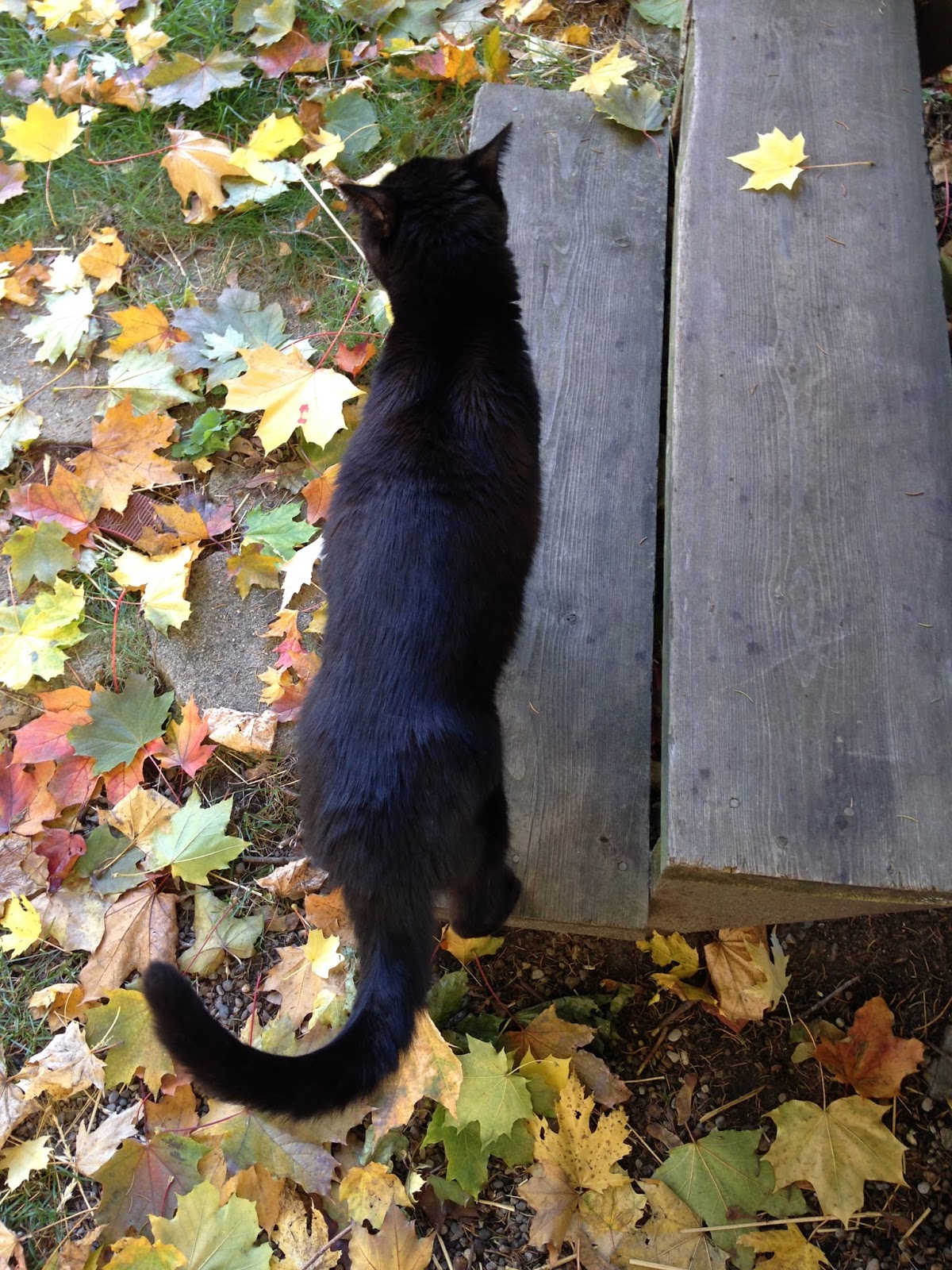 Took a walk down the street to see if my old friend Hobo was out and about, and was delighted to see his furry face again! I did not bring any food (Note to self: ALWAYS stuff some kibble in your pocket if you are out visiting cat friends!), so after regarding me for a moment, he turned back to the door of the home where he's currently residing in the yard.