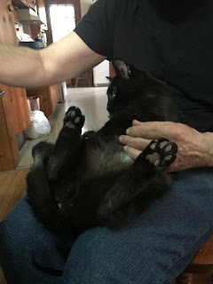 As for Chucky, he's really up and down. He is good one day, not so good the next. We can tell when he's not feeling well, but we don't know when he's going to 'download', and it is NOT always in the litterbox. Between hard poops and diarrhea, he's been drinking lots of water and not eating so much food. My first inclination is to rush to the vet's office, but The Hubby has laid a restraining hand on my arm, telling me to slow down and give it a few days. If Chuck simply ate too much catgrass, then once it's through his system, he'll be okay. In fact, all of the cats stopped eating their usual meal portions in recent days. Maybe it's due to the warmer temps? One day at a time, one meal at a time.