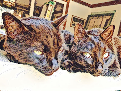 | Click on the image of Sweetie being angry at hearing voices to enjoy an online jigsaw puzzle! For Caturday art, I used my Prisma app, using "Chess" |